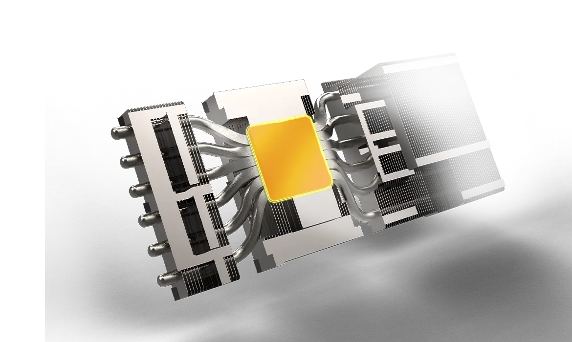 搭載6根6mm大尺寸導熱管和大型鋁鰭片,配合2顆大風扇,可快速且有效率的將溫度冷卻。