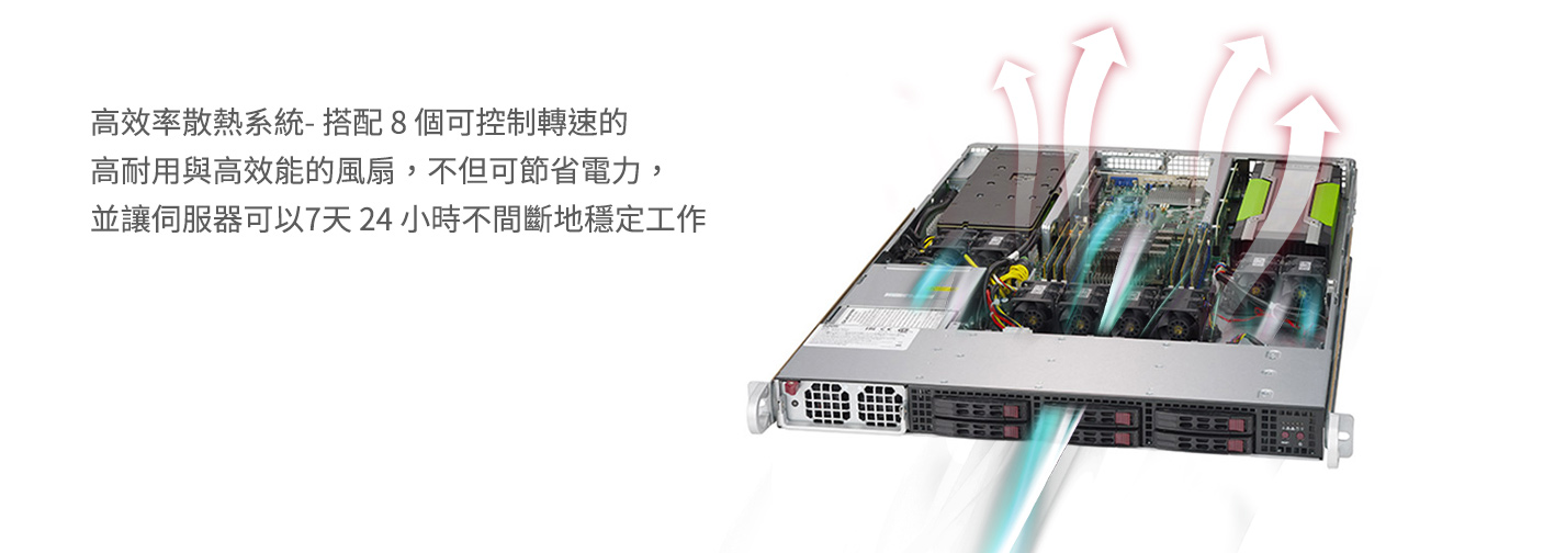 系統內建 BMC(Baseboard Management Controller) 晶片,可隨時回報系統健康狀態