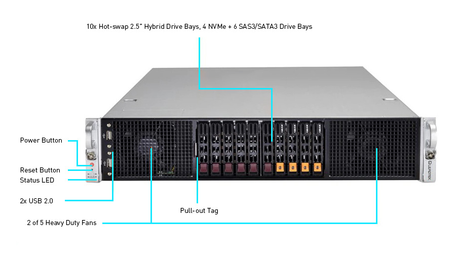 | 熱插拔 | 10x 2.5" hot-swap NVMe/SATA/SAS drive bays (4x 2.5" NVMe dedicated) |