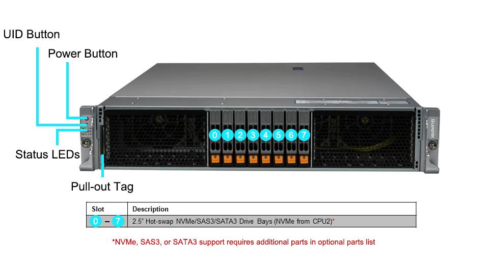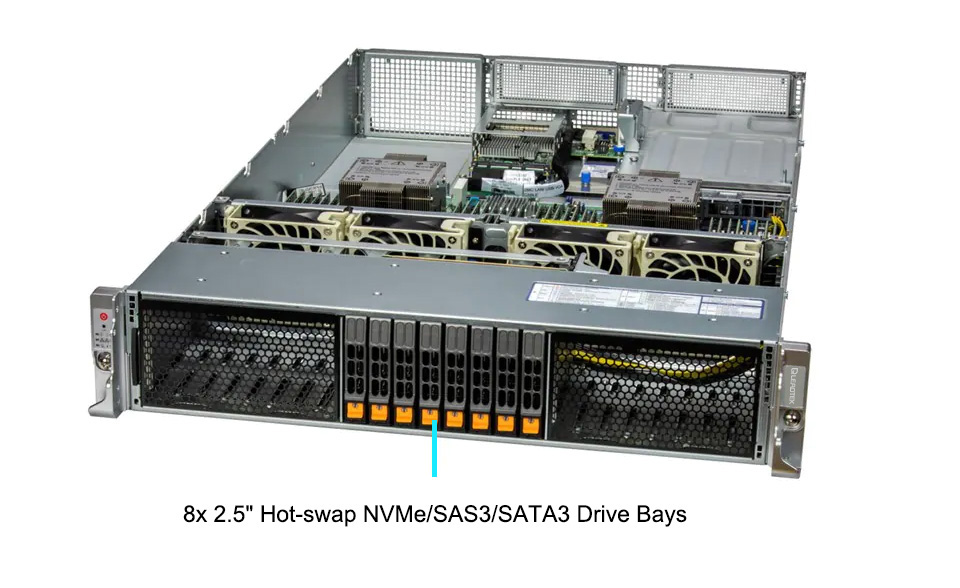 | 熱插拔 | 8x 2.5" hot-swap NVMe/SATA/SAS drive bays |