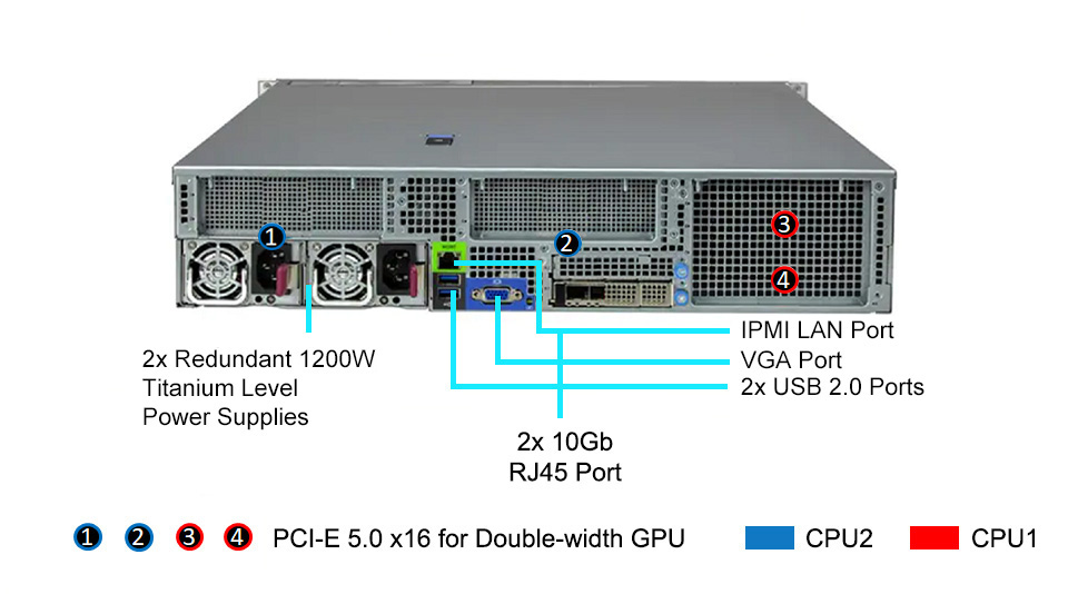 | 電源 | 2x 1200W 1U Redundant Power Supplies with PMBus (Optional 2000W Redundant power supply for 4pcs 250W GPU) (Optional 2600W Redundant power supply for 4pcs 300W GPU) |