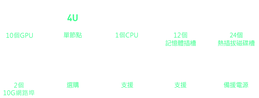 WinFast GS4855 ST 可支援多達 10 個雙寬度GPU的高效能伺服器, 可以支援 NVIDIA GPU, 包括 H100/L40/L40S/A100/A6000/6000 Ada, 符合 AI 深度學習/3D繪圖/模擬等應用的需求。