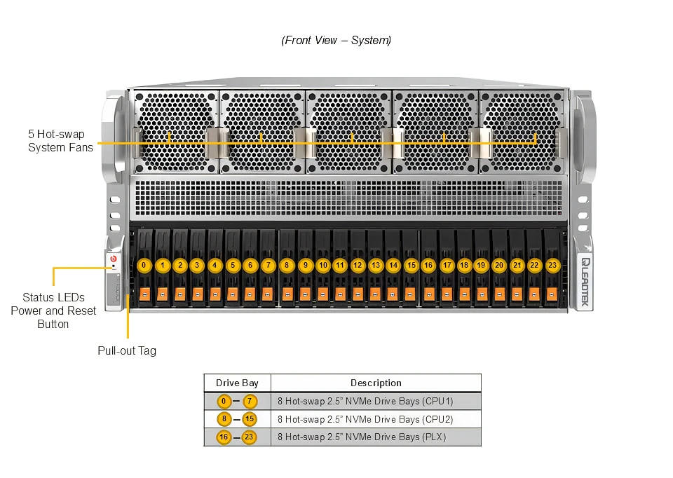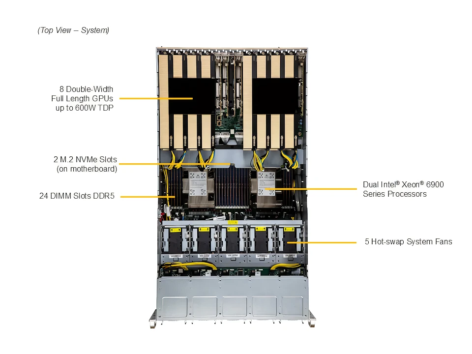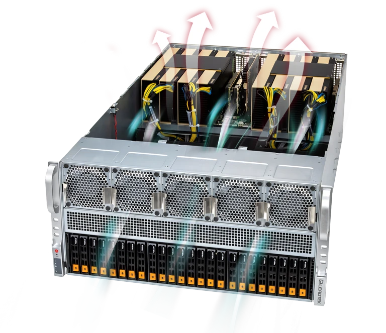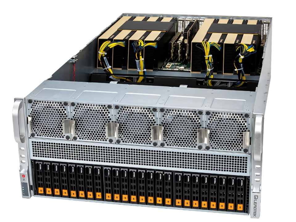 WinFast GS5852T 可支援多達 8 個雙寬度GPU的高效能伺服器, 可以支援 NVIDIA GPU, 包括 H100 NVL, H200 NVL (141GB), NVIDIA RTX PRO™ 6000 Blackwell Server Edition, L40S, L4 並可以搭配 NVLink 橋接器, 擴展多 GPU的運算效能, 符合 AI 深度學習/3D繪圖/模擬等應用的需求。