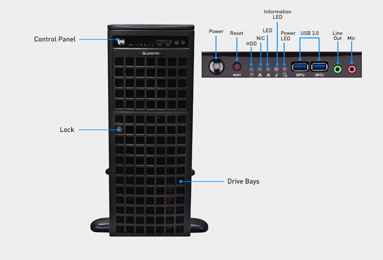 系統內建 BMC(Baseboard Management Controller) 晶片,可隨時回報系統健康狀態