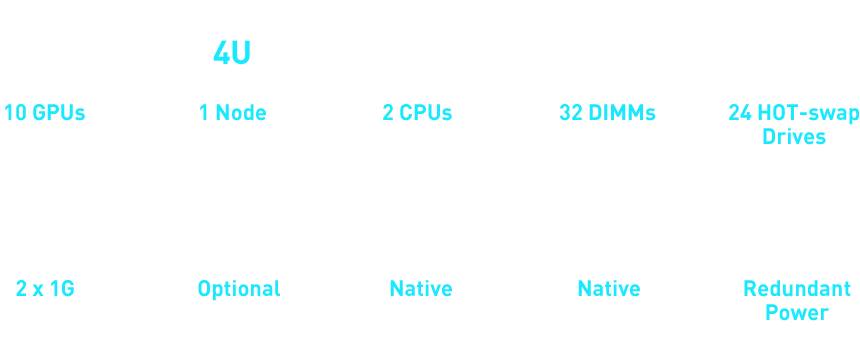 | PCI-Express | 12 PCI-E Gen 4.0 X16 FHFL Slots |