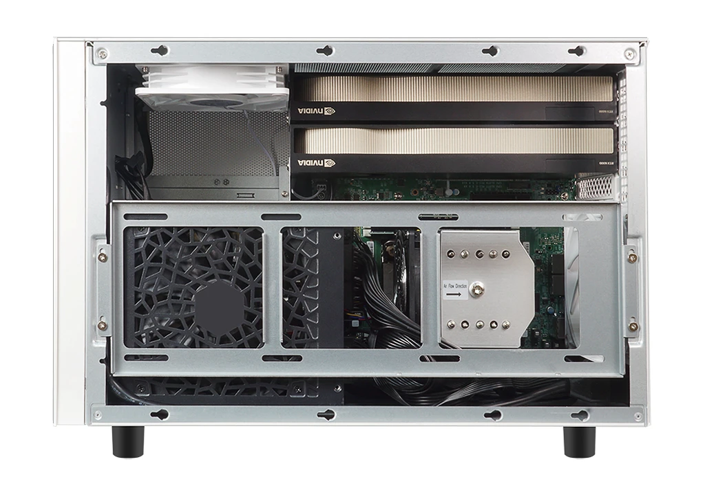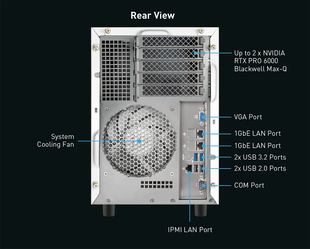 Supports up to 2× RTX PRO 6000 Max-Q Workstation Edition GPUs, provide 192GB of GPU memory in a single workstation