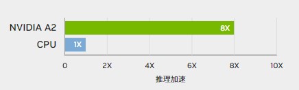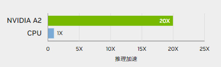 部署 AI 推理技术的目的是通过智能、实时的体验为消费者打造更便利的生活。与 CPU 服务器相比,搭载 NVIDIA A2 Tensor Core GPU 的边缘和入门级服务器可提供高达 20 倍的推理性能,可立即将服务器升级到能处理现代 AI 的水平。