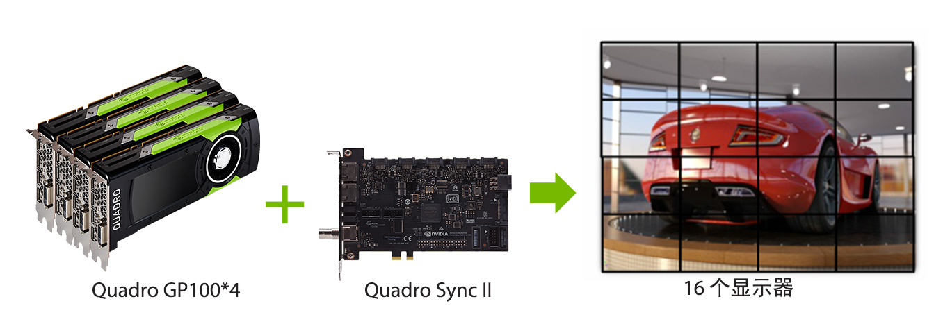支持 Quadro Sync II利用多张Quadro GPUs组合的性能可大幅度改善您的工作流程或执行大规模可视化效果