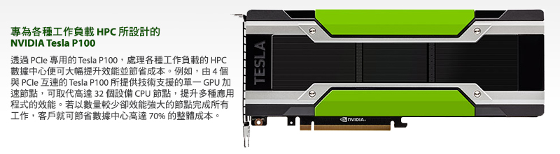 | NVIDIA TESLA P100 加速器的效能規格 | |