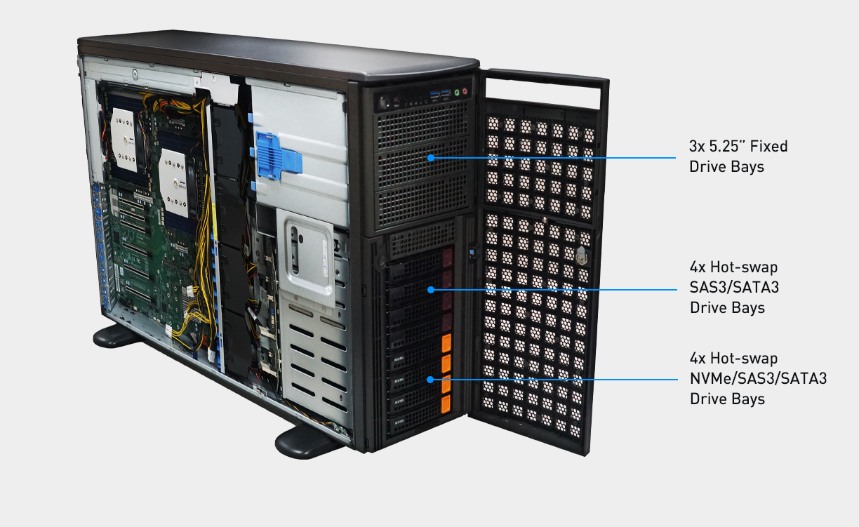 WinFast WS2040 可支援多達 4 個雙寬度GPU的超級工作站, 可以支援 NVIDIA Ampere 架構, Tesla 或 Quadro 系列的 GPU, 並可以搭配 NVLink 橋接器, 擴展多 GPU的運算效能, 符合 AI 深度學習/3D繪圖/模擬等應用的需求.