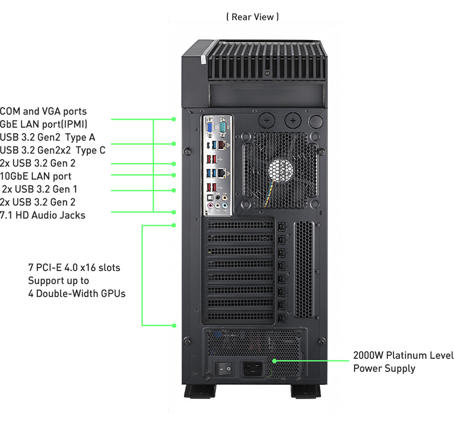 WinFast WS945可支援多達 4 個雙寬度GPU的高效能工作站, 可以支援 NVIDIA Ampere 架構, Quadro 系列的 GPU, 包括 RTX A6000/A5000/A4000, Quadro RTX8000/RTX6000/RTX5000, 符合 AI 深度學習/3D繪圖/模擬等應用的需求。