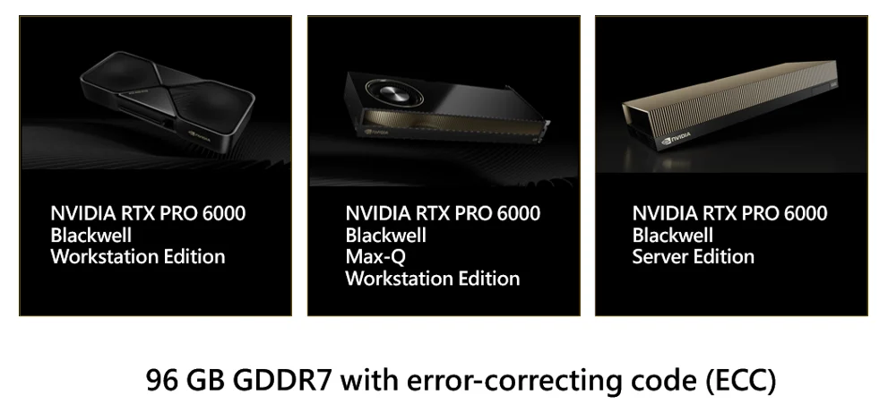 NVIDIA has introduced the RTX PRO™ 6000 Blackwell series GPUs for workstations and data centers: the Workstation Edition, Max-Q Workstation Edition, and Server Edition. All three models feature a massive 96GB GDDR7 memory upgrade, significantly accelerating computing, AI training / fine-tuning / inference, ray tracing, and neural rendering technologies. They deliver powerful next-generation computing performance and multi-GPU scalability, redefining workflows for AI, technical, creative, engineering, and design professionals.