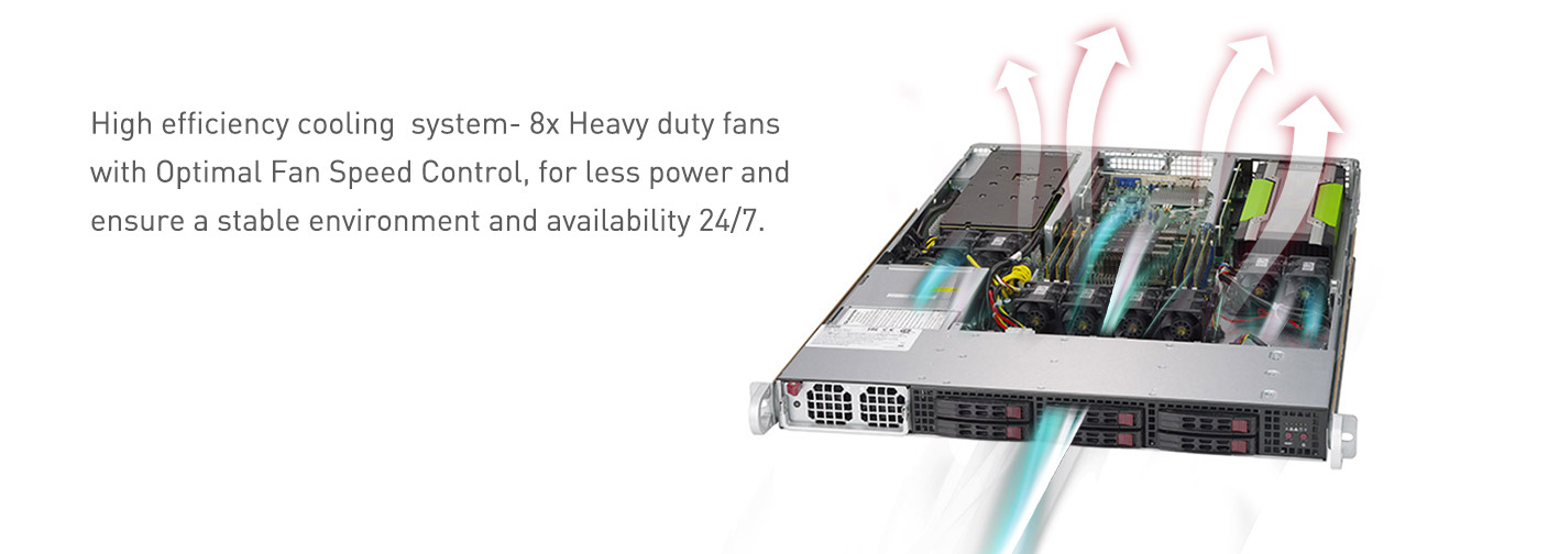 | Fans | 8 heavy duty counter-rotating 4cm fans with air shroud and optimal fan speed control |