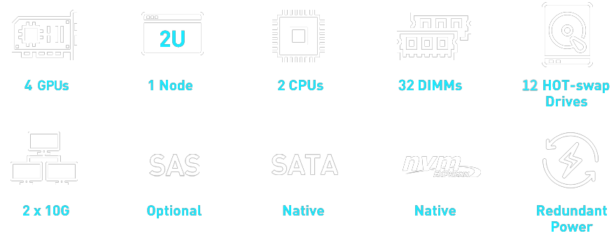 | Hot-swap | 12x 3.5”/2.5” hot-swap NVMe/SATA/SAS drive bays |